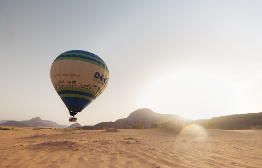 Be awe-struck at the beauty of Wadi Rum from 2,000 feet above the earth’s surface as the desert stretches endlessly beneath you. Located in the Disi area, this journey off the beaten path lets you soar over sandstone mountains, sweeping valleys, and golden dunes.