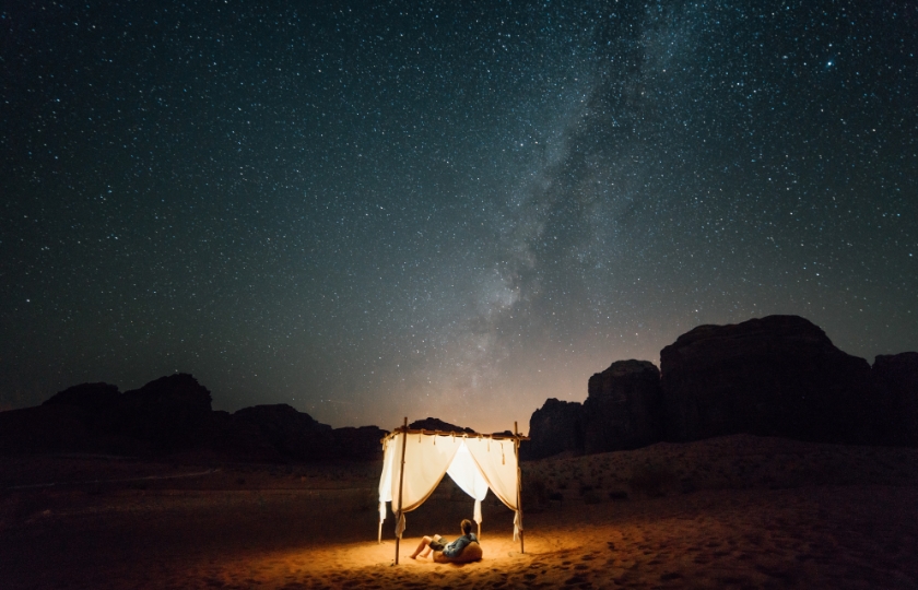 يقع في واحدة من أجمل المناطق في الأردن، ويتيح للزوار الاستمتاع بليالي وادي .رم المرصعة بالنجوم