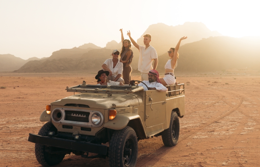 استعدّ لتجربة مليئة بالحيوية والانطلاق في جولة بسيارات الدفع الرباعي عبر الكثبان الرملية الذهبية، حيث ستشعر باندفاع رياح الصحراء وأنت تنطلق بسرعات مشوّقة وسط جمال وادي رم الوعر. وخلال الرحلة، ستتأمل التكوينات الصخرية الفريدة التي نحتتها الطبيعة عبر الزمن لتتحول إلى أشكال مدهشة وعجائب طبيعية آسرة. وسواء تم تنظيم الجولة من خلال المخيم أو مركز الزوّار، تَعِدك هذه المغامرة الحماسية بتجربة لا تُنسى تجمع بين روح المغامرة ومشاهد طبيعية خلّابة لأحد أشهر صحارى الأردن.